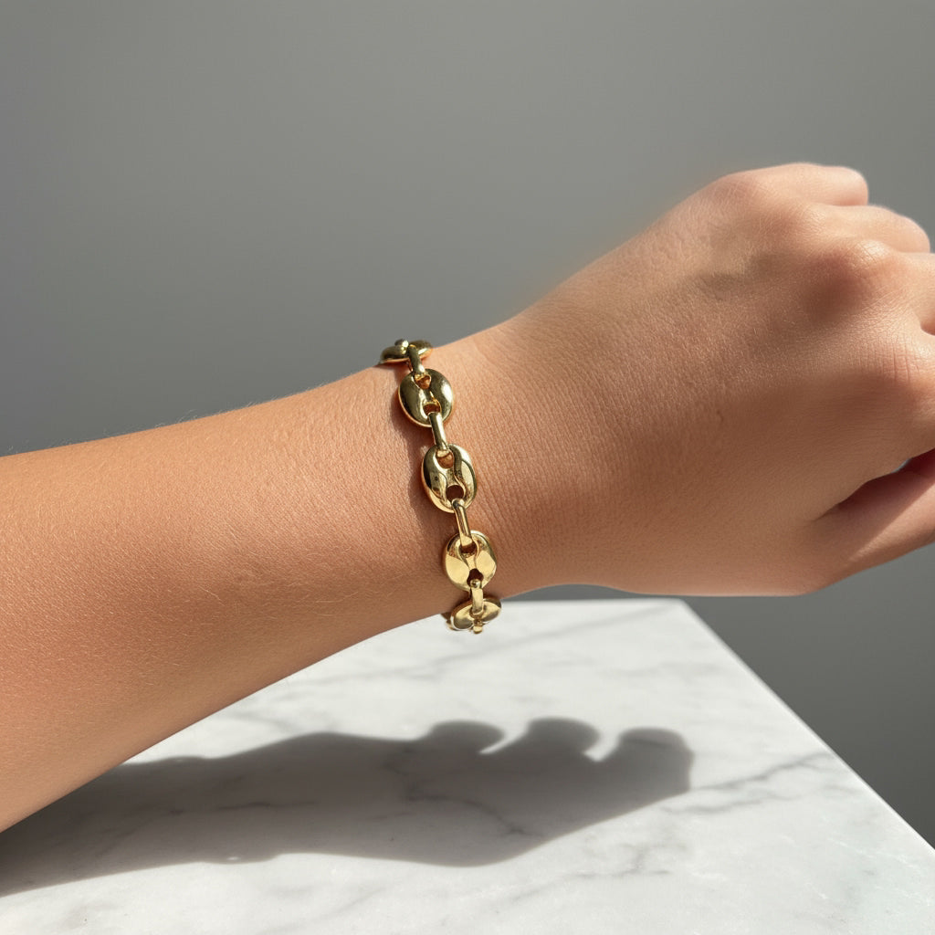 Klassisches Armband von hoher Qualität. Ein wirklich schönes Armband, das man das ganze Jahr über tragen kann, insbesondere in Kombination mit einer Uhr oder Armbändern aus Halbedelsteinen.