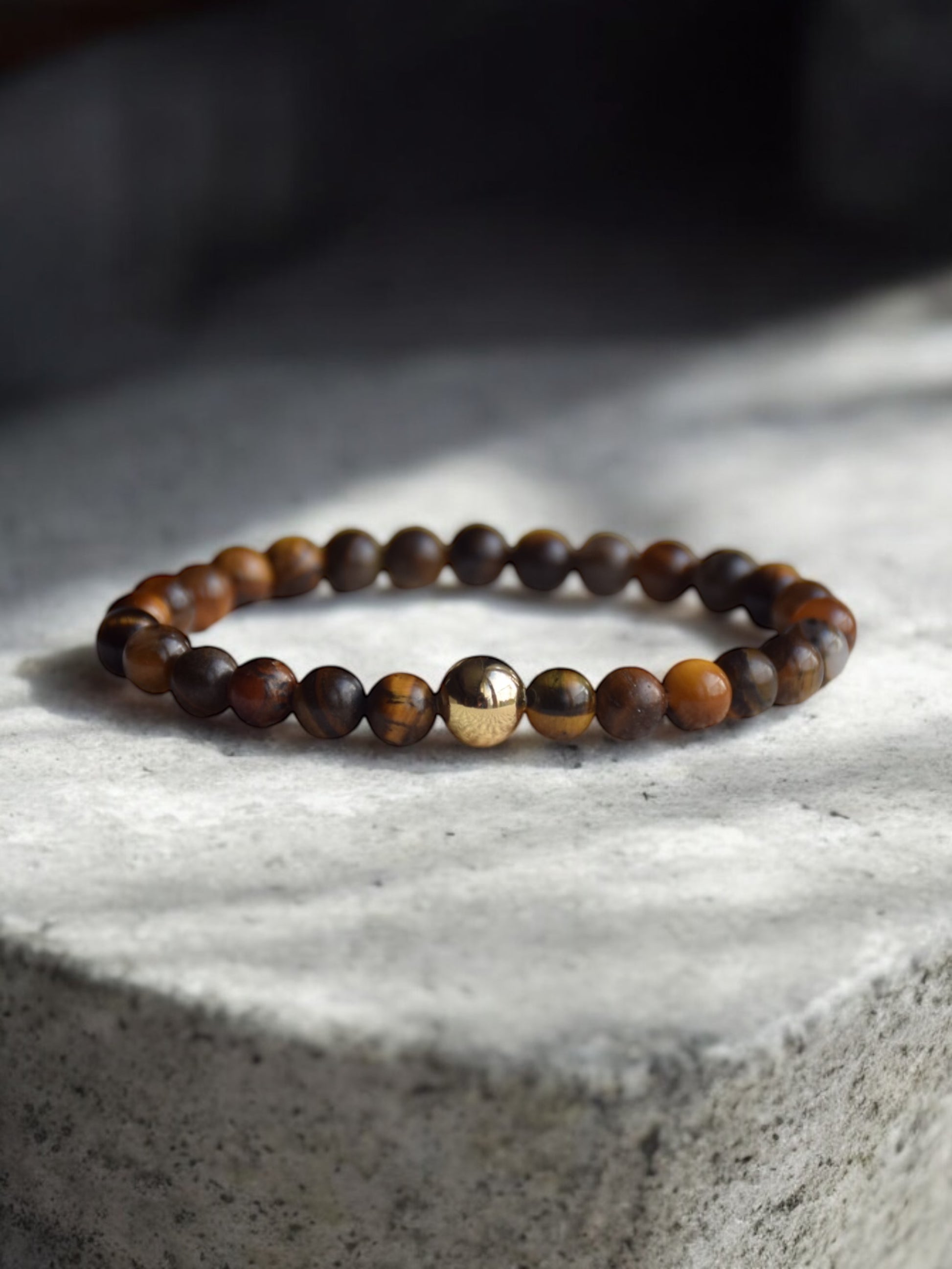 Material: Der Halbedelstein Tigerauge mit vergoldeten Details.