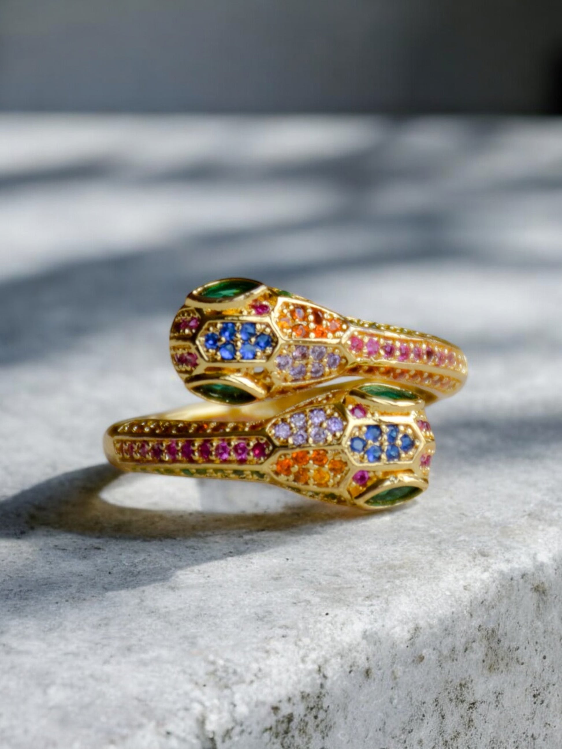 Two snake heads with beautiful details and cubic zirconias in several different colors make this ring incredibly special! An exclusive ring that you will be able to wear for many years.