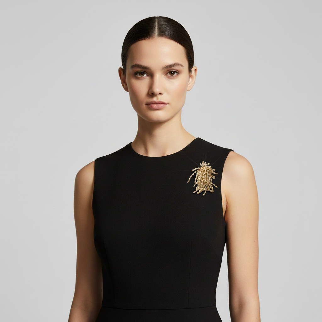 En otroligt fin statementbrosch storlek större. Bär den på en kavaj eller en stickad tröja för att addera det där extra till din outfit.