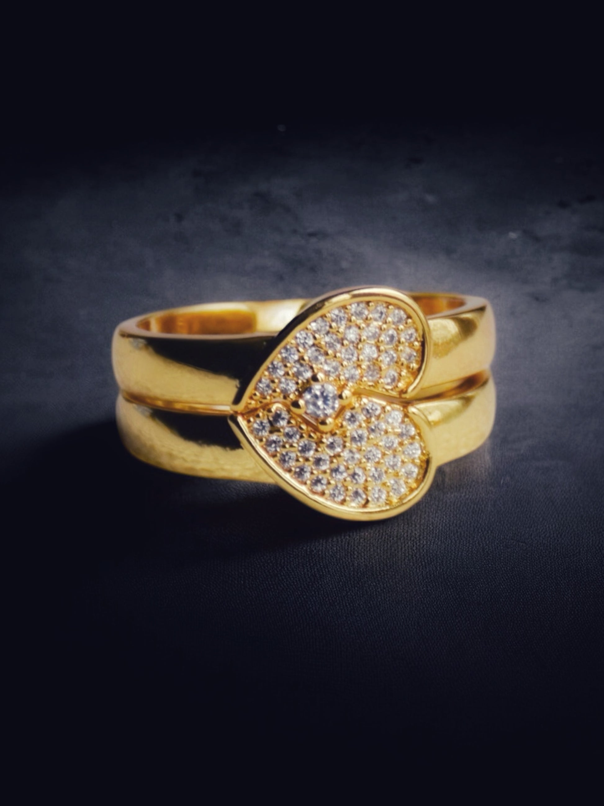 Material: 24 k gold-plated rings with small cubic zirconias as details.