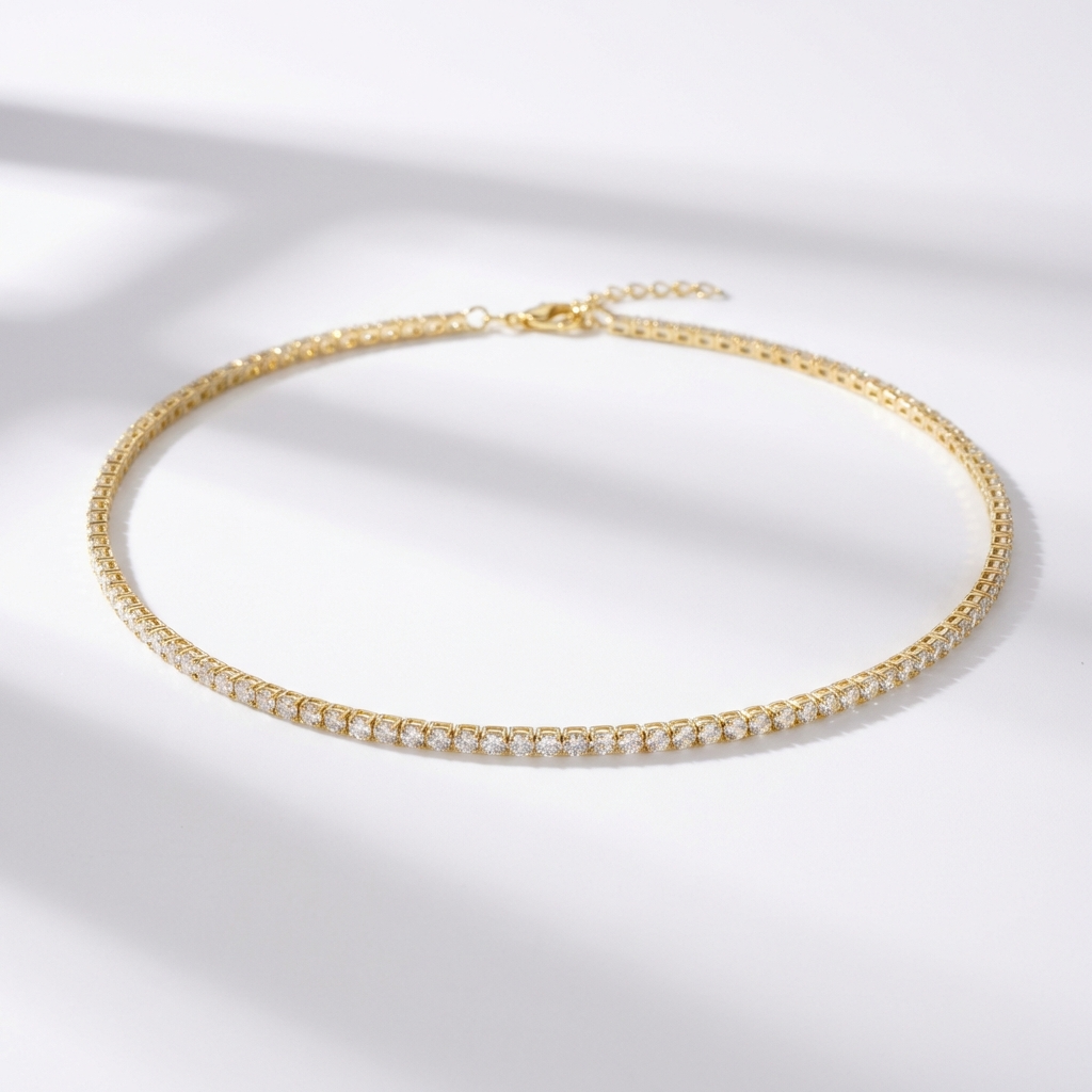 Material: 24 k guldförgyllt tennishalsband med cubic zirconer.
