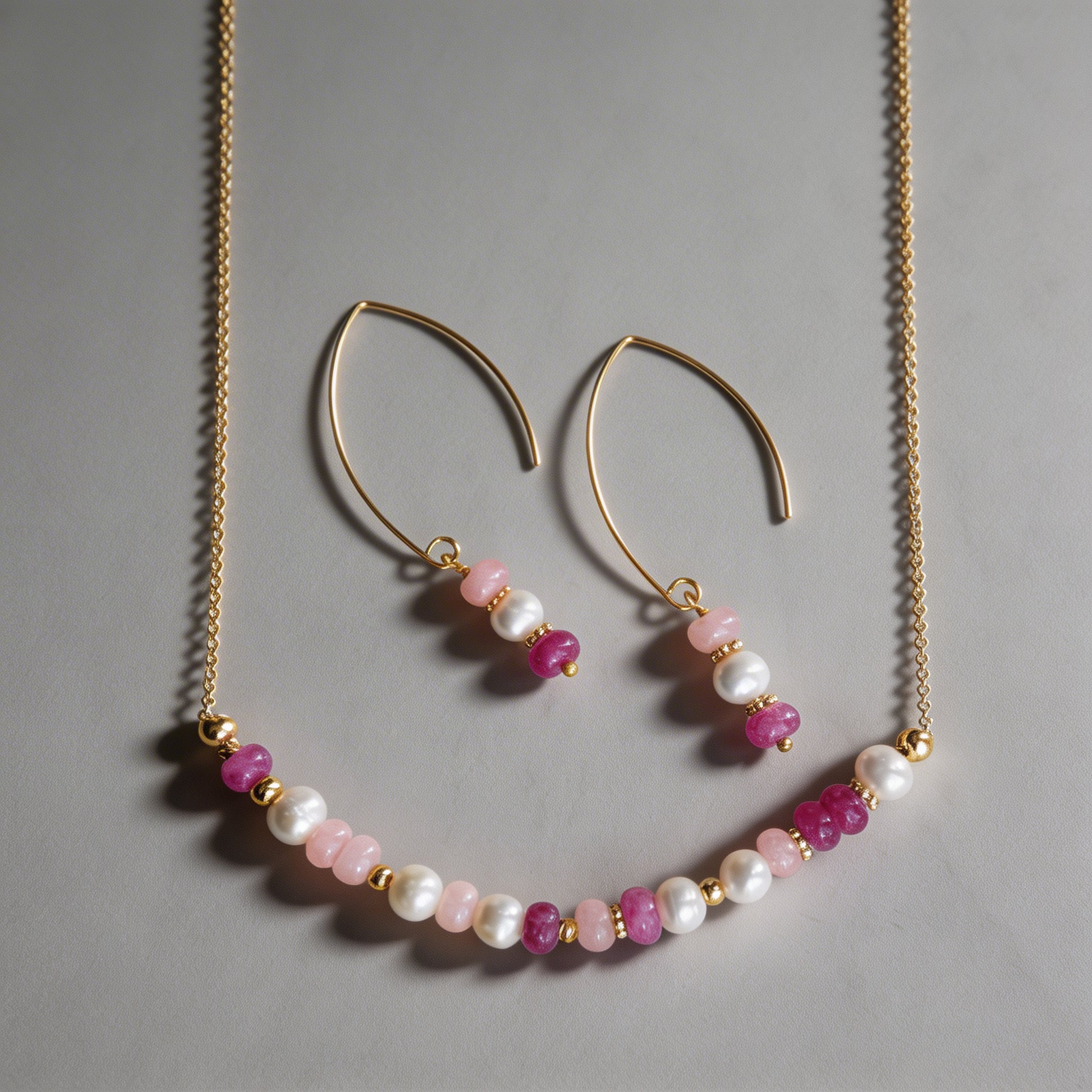 Material: Ett set med 24 k guldförgylld kedja med halvädelstenar och sötvattenpärlor med matchande örhängen till.