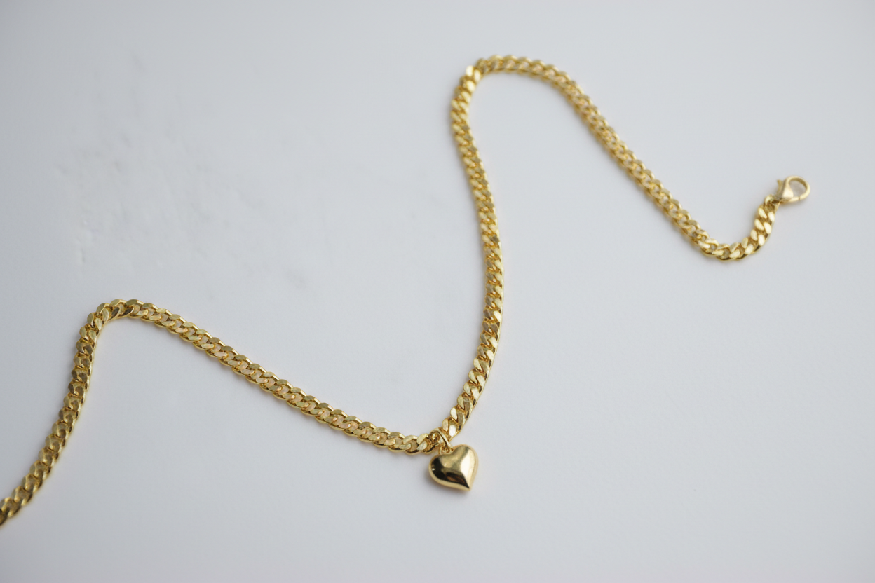 Material: 24 k guldförgylld kedja med en hjärtberlock. av samma höga kvalitet.